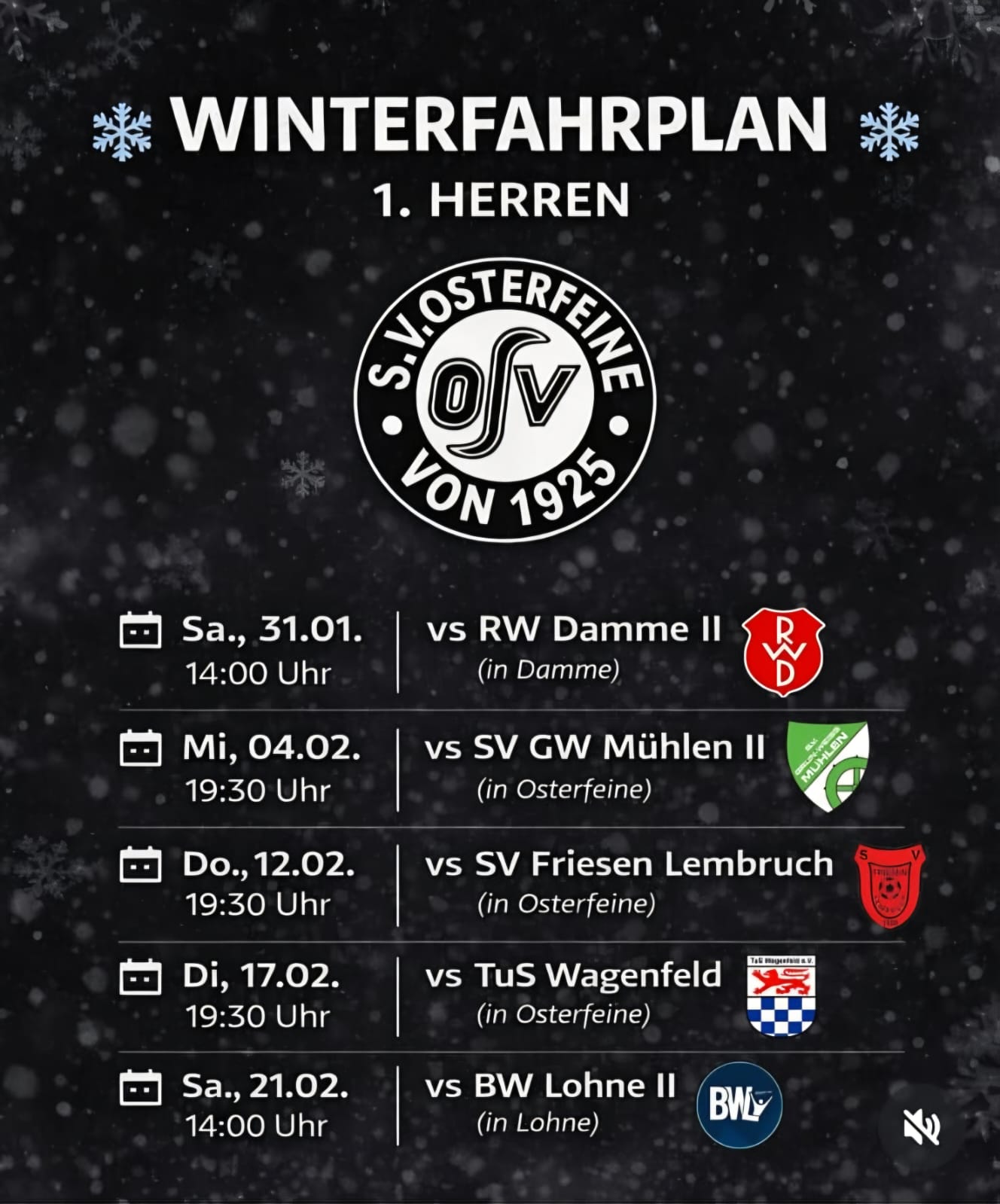 Sa. 31.01.26, 14.00 Uhr RW Damme II vs. SWO