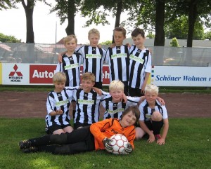 Auch unsere 1. F-Jugendmannschaft durfte am Sonntag an dem F 1 Jugendturnier teilnehmen. Zu diesem Turnier waren insgesamt 8 Mannschaften aus der näheren Umgebung, insbesondere aus dem Osnabrücker Raum, eingeladen. Folglich herrschte an diesem Sonntagvormittag reges Treiben im Aue-Stadion. Gespielt wurde in zwei Gruppen mit je vier Mannschaften bei einer Spielzeit von 1 x 15 Minuten. Hinzu kam dann noch ein weiteres Platzierungsspiel, sodass insgesamt vier Spiele zu bestreiten waren.