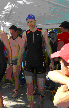 Bei einer Wassertemperatur von 24°C und einer Lufttemperatur von etwa 30°C wollte man eigentlich das Wasser gar nicht verlassen. Durch den Fahrtwind war das Radrennen noch relative angenehm, aber der anschließende Lauf ließ den Schweiß durch alle Poren schießen. Im Ziel war man dann für jede Erfrischung dankbar.
