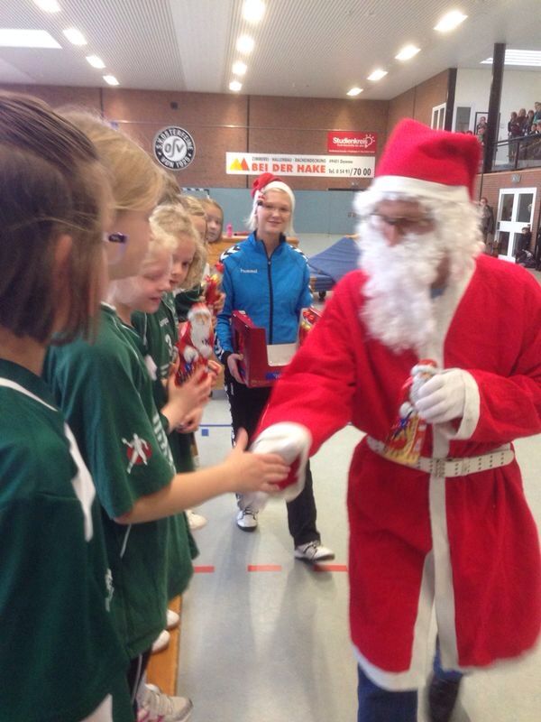 Einen supertollen Handballtag hatten die insgesamt 120 Minis beim SWO-Nikolausturnier! Pünktlich um 10:00 Uhr trafen die 14 Mannschaften aus dem gesamten Kreis Vechta ein. Nach einem gemeinsamen Aufwärmen begannen dann die Gruppenspiele. Hier konnten die Jüngsten aus den Vereinen mal zeigen, was sie schon alles können. In den Spielereien Zeiten konnten sich die Kids auf einem extra Spielfeld austoben. Zum Abschluss kam der Weihnachtsmann persönlich und verteilte an die engagierten Jungs und Mädchen Schoko-Nikoläuse und eine tolle Urkunde als Andenken. Ein rundum gelungener Tag! Ein paar Fotos haben wir auch.