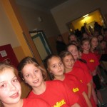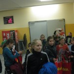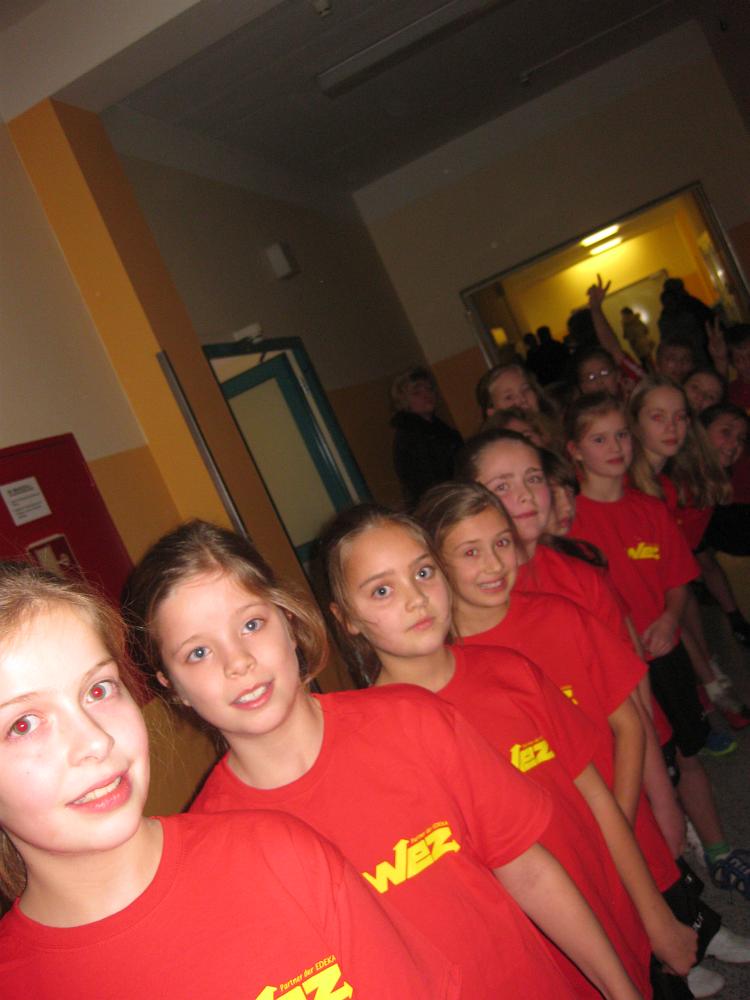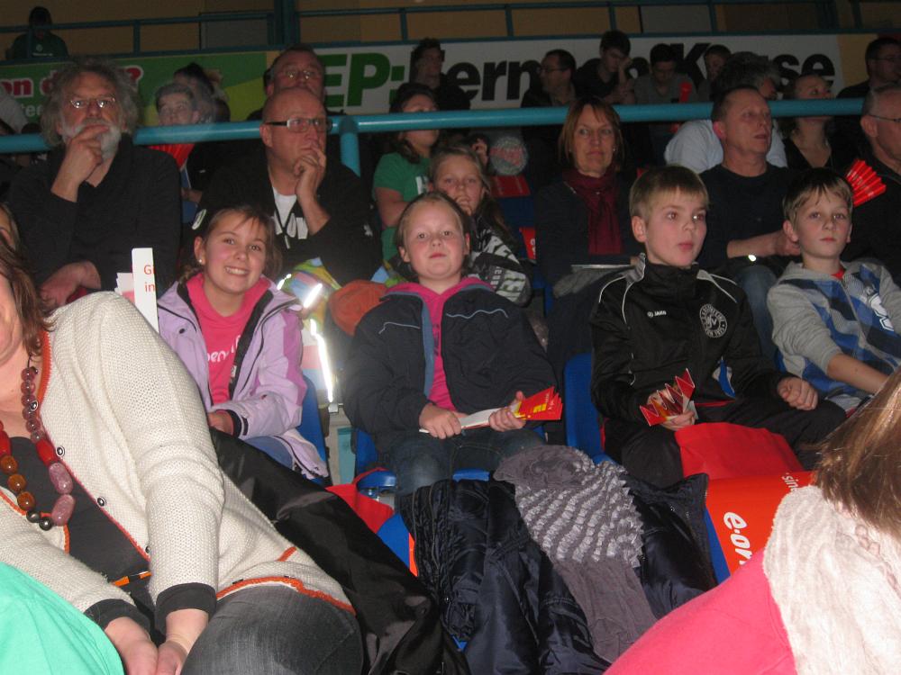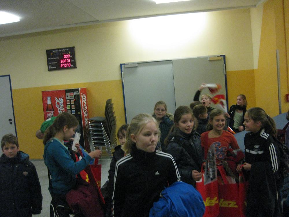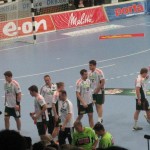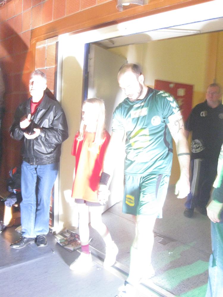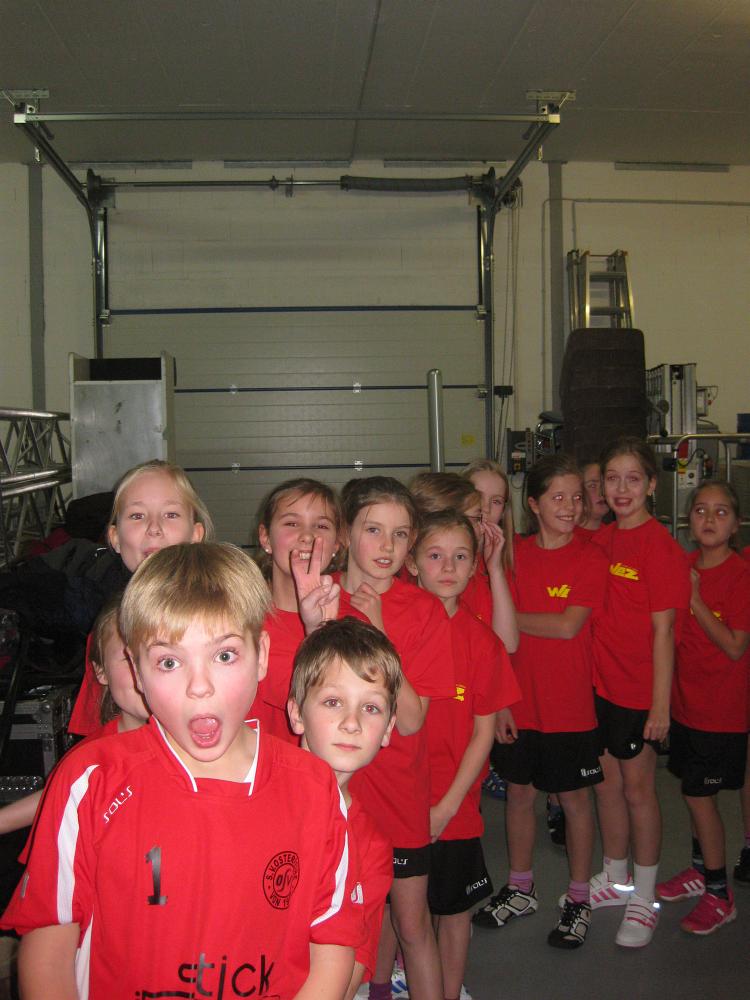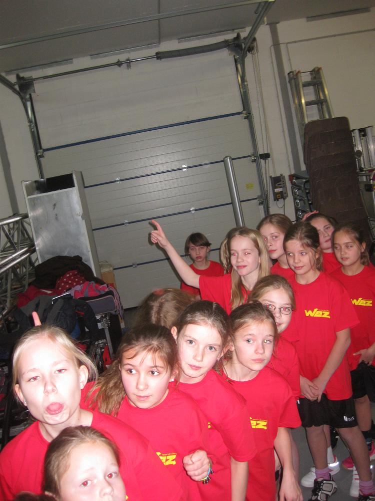 Die E-Jugend Spieler/innen konnten sich vor Aufregung kaum halten. Als es in Richtung Umkleidekabine ging, wurden die Trainer und die Kinder schon einmal ein bisschen eingewiesen. Es gab leider keine freie Umkleide für die Mädels und Jungs, sodass sie sich in einer Abstellkammer für eine Eventbühne umziehen mussten. Doch dadurch ließen die Osterfeiner sich nicht entmutigen. Schnell wurden die Klamotten umgezogen und schon waren die T-Shirts, die sie vom GWD Minden geschenkt bekommen haben angezogen. Nun hieß es warten. Alle 5 Minuten wurde gefragt, wie lange noch. Um die Zeit zu vertreiben wurde zwischendurch ein kleines Mannschaftsfoto gemacht. Dann war es soweit. Die Osterfeiner mussten sich vor der Eingangstür, die in die Halle führte aufstellen. Einige Minuten Später kamen die Spieler von GWD Minden. Jeder durfte mit einem Spieler einlaufen. Nach dem einlaufen ging es wieder schnell zum Umziehen und gleich auf die Tribühne, wo die Eltern auch schon saßen. Jetzt konnte ganz in Ruhe das Spiel angeschaut werden.