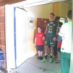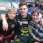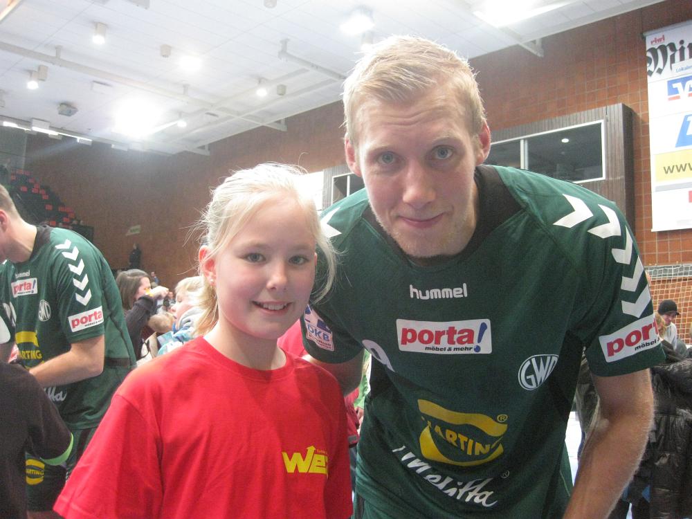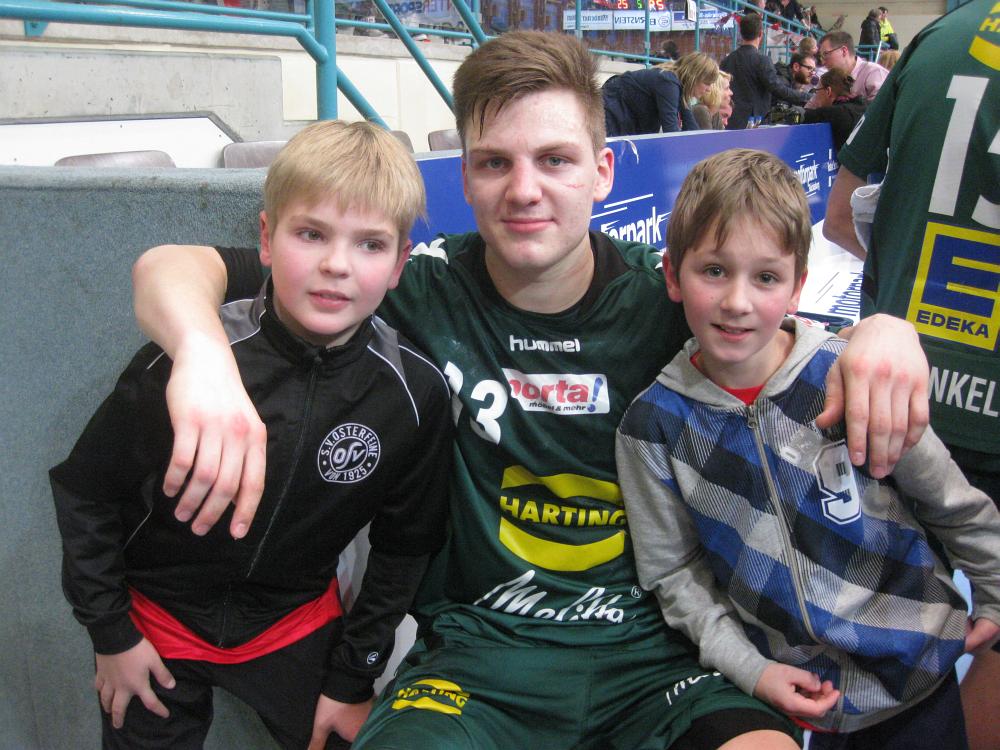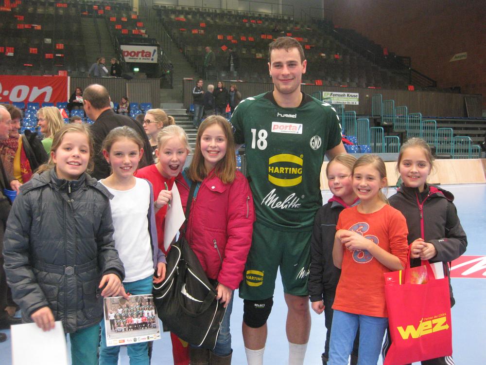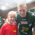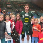 Dann ging es noch richtig zur Sache. Jeder GWD Minden Spieler musste noch auf dem Feld Autogramme schreiben und mit den Osterfeinern Fotos als Erinnerung machen.