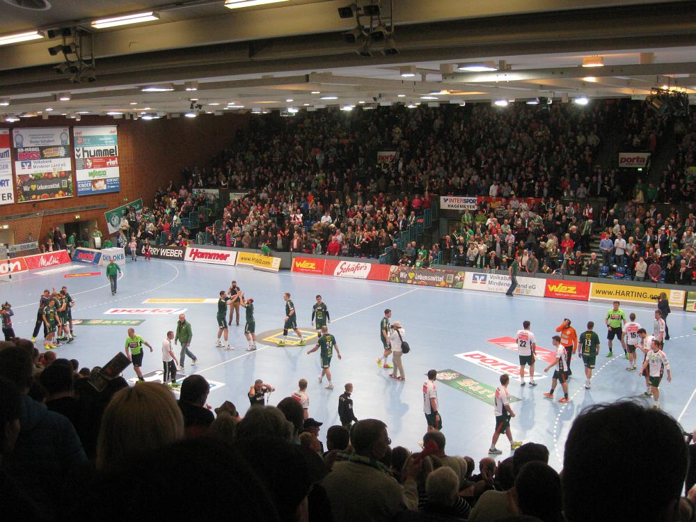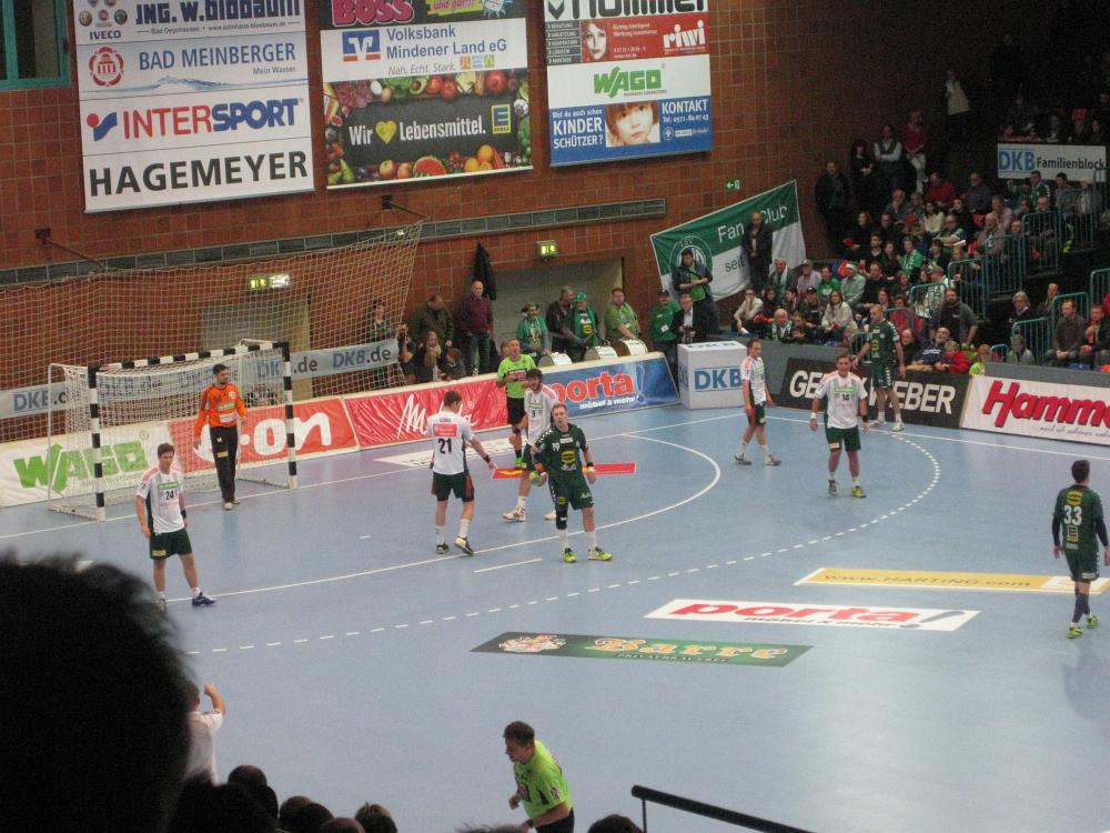 Um 16:30 Uhr ging es mit einem vollbesetzten Bus in Richtung KAMPA-Halle in Minden, wo die Spieler vom GWD Minden auf TSV Hannover-Burgdorf trafen.