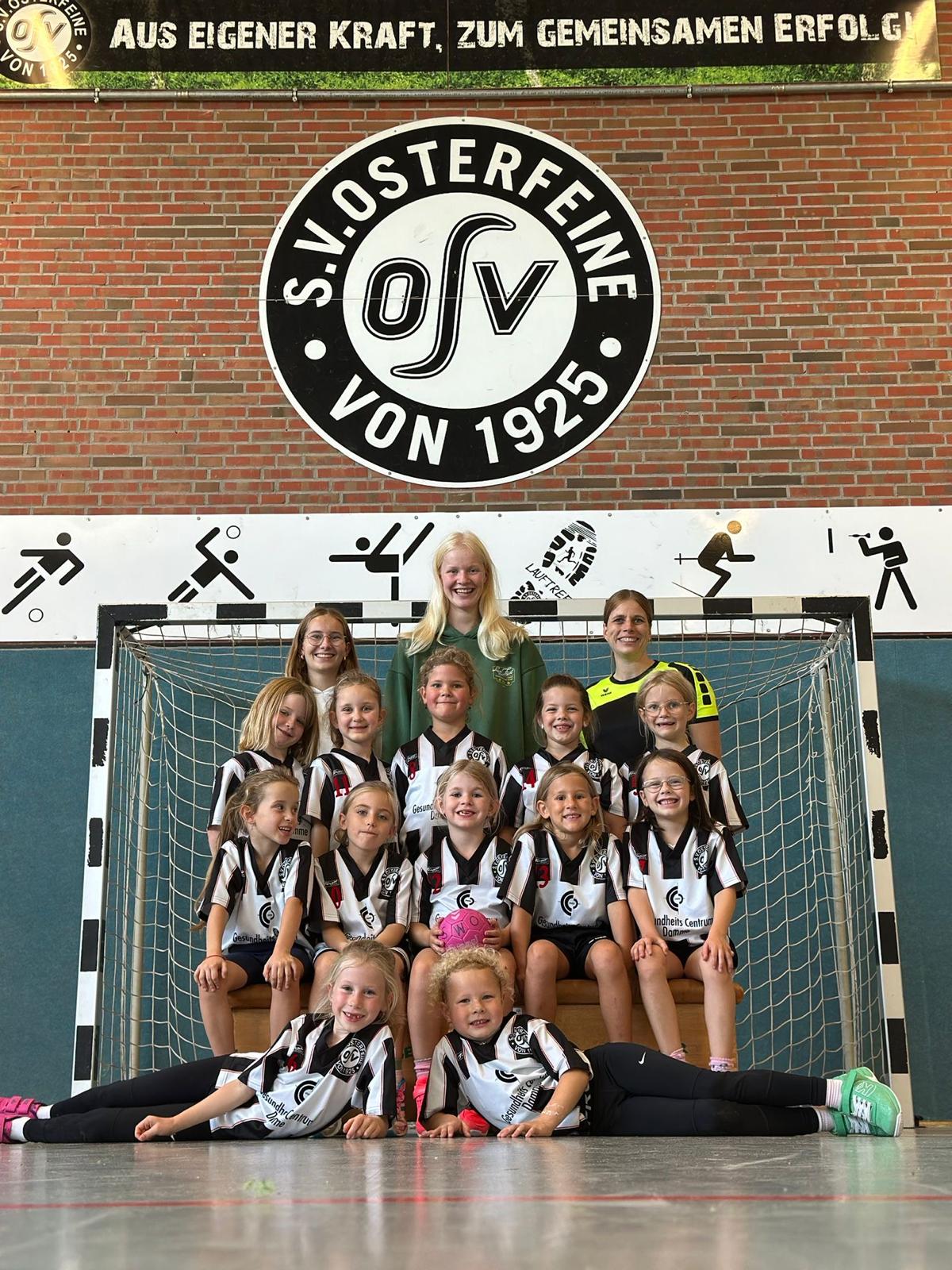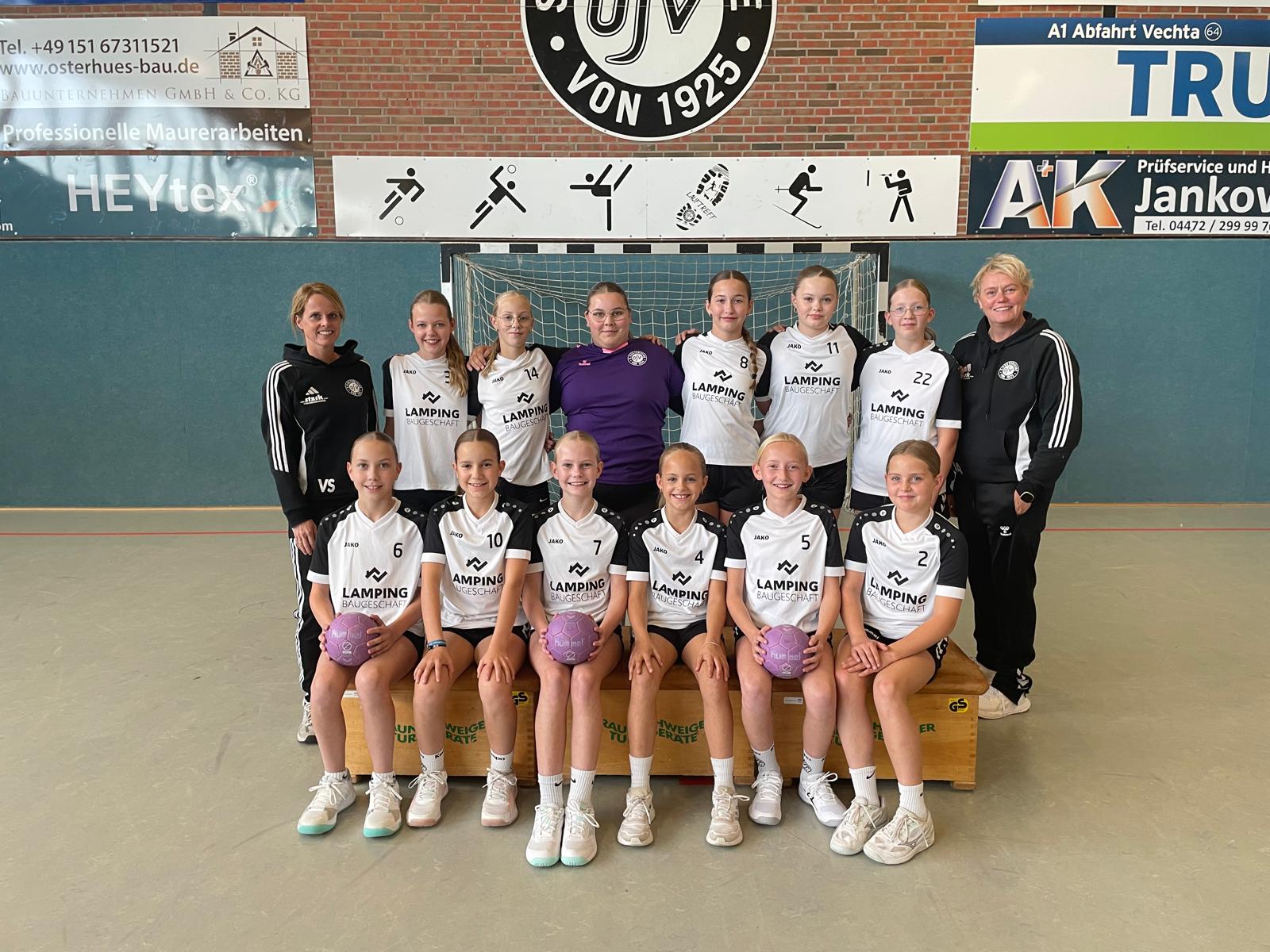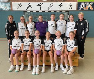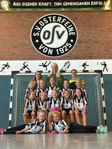 v.v.l.: Eva Thiel, Frieda Wessel m.v.l.: Pauline Pieper, Sophia Drahmann, Emma Gohmann h.v.l.: Julian Schuler, Greta Kamps, Sophie Klatte, Inga Wehming Hinten: Trainerin Anne Thiel und Karina Kehl Es fehlt: Trainerin Katharina Börger |